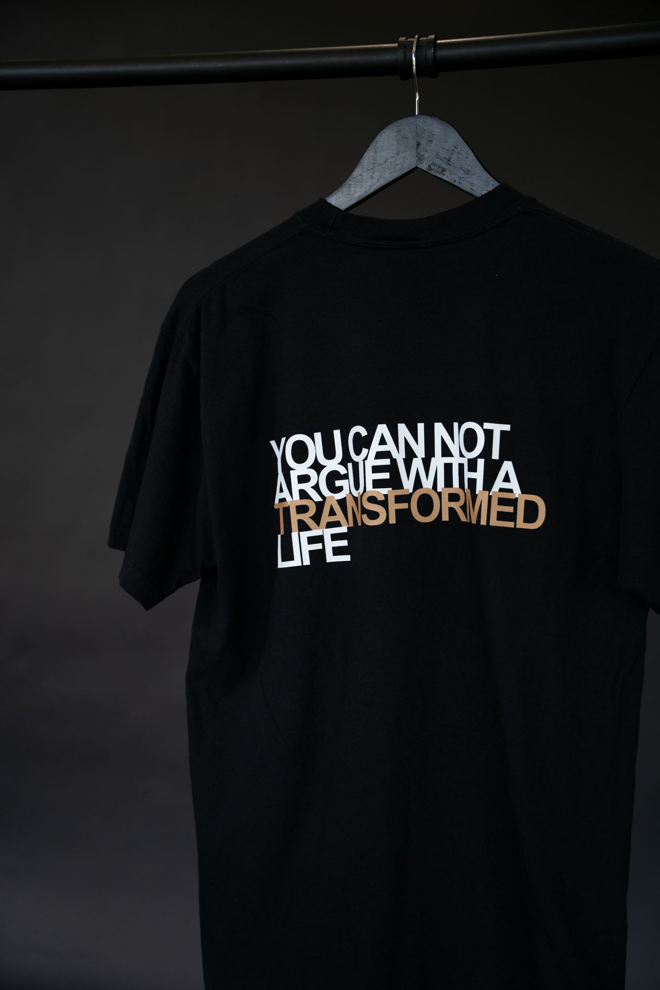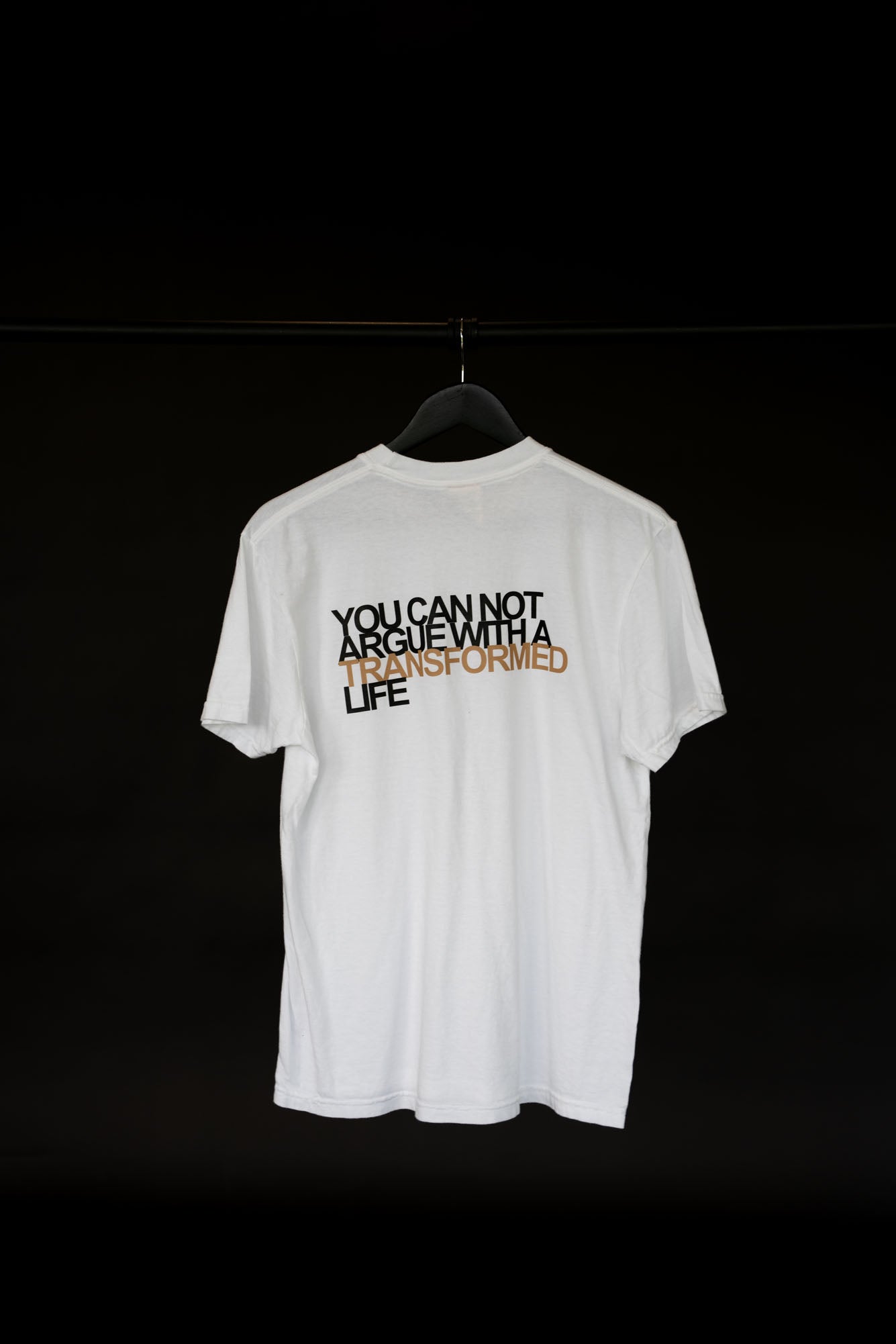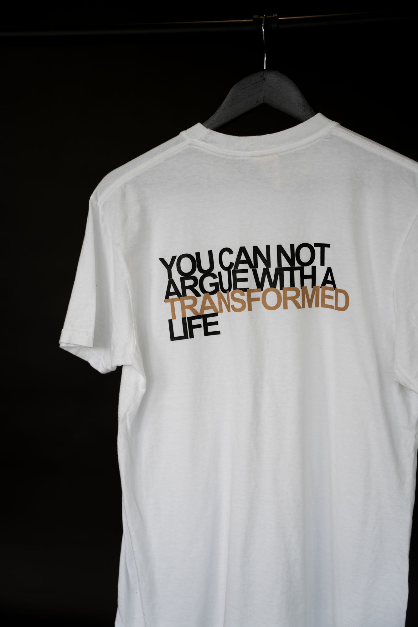 If your life is evidence of the transformative power of God's love, this T-Shirt is for you! *Note- image is on the back of this Tee.