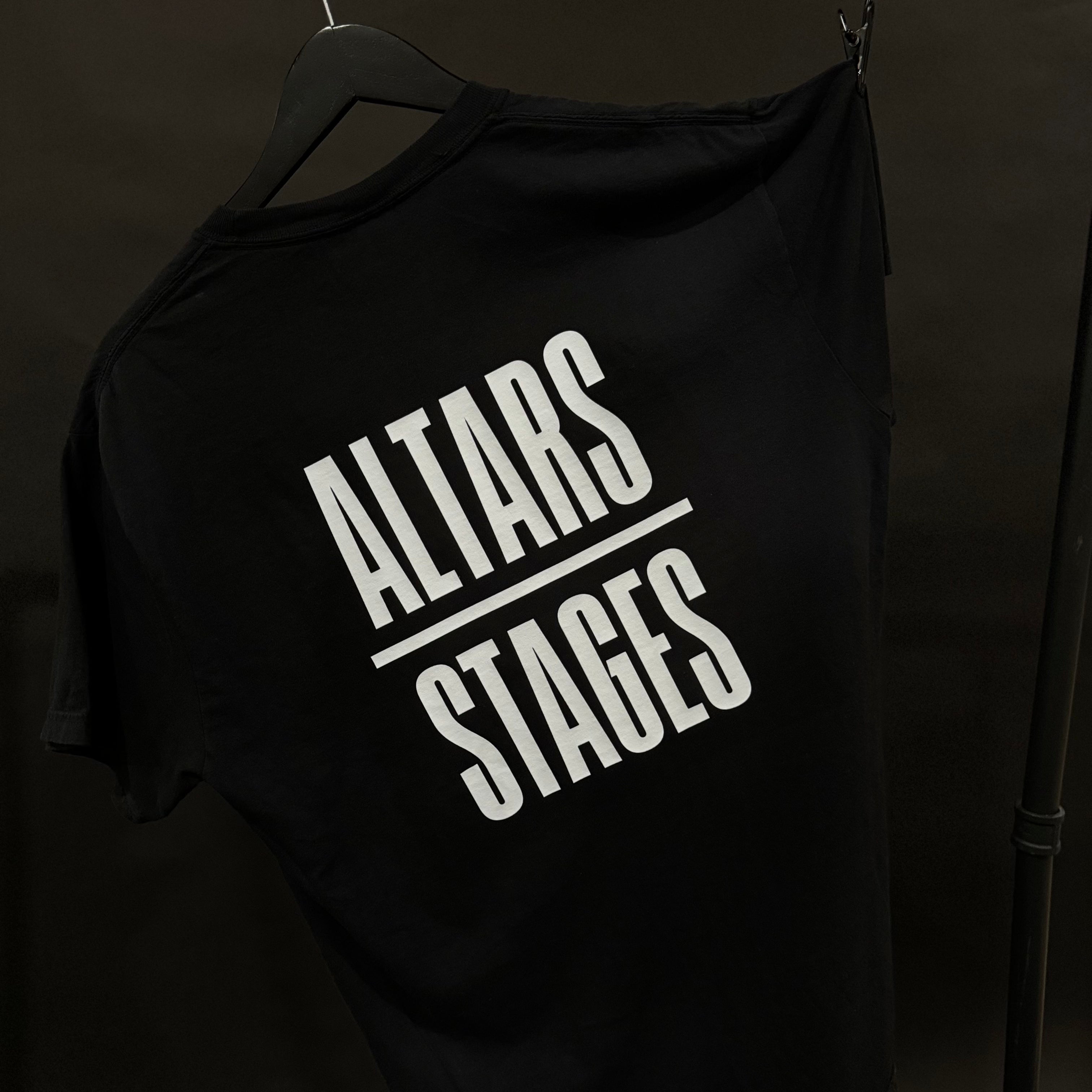 Don't get us wrong, we are not opposed to stages! If the Lord chooses to put you or I on one, we'll celebrate! But let's not forget it's at the altar, face to face with our King, that our hearts and minds are truly restored. Available in both black and white. *Note- image is on the back of this Tee.
